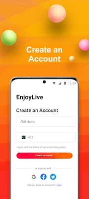 • You can join ENJOYLIVE from anywhere in the world and be a part of Live Videos Fun and enjoy the live games. Anyone can show his/her Special talent among your friends and get famous. Singing, dancing, painting, chatting, traveling and gaming can be shown to anyone. Connect your account to Facebook, Twitter, Instagram, phone number and Google+.