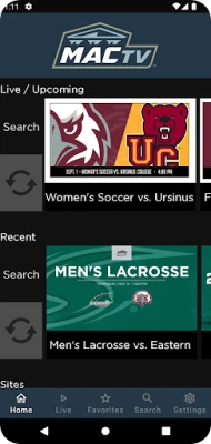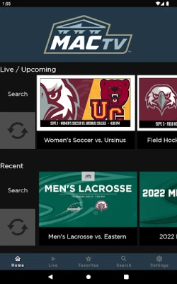 The MACtv android app gives you quick and easy access to your favorite Middle Atlantic Conference live and archived events. With broadcasts produced by the Middle Atlantic Conference and Middle Atlantic Conference member institutions, the MACtv android app is the go to destination for Middle Atlantic Conference sports. MACtv is a partnership between the Middle Atlantic Conference and BlueFrame Technology.