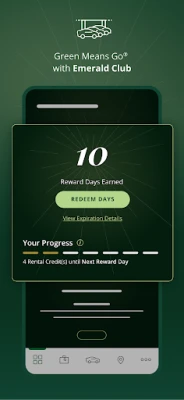 • Manage your Emerald Club profile, view your progress to the next Emerald Club tier and credits toward free rental days (covers base rate, Time and Mileage, only).​