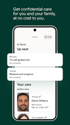 - Explore your care: Book a session, or just explore the app. If you’re hesitant about taking the first step or have any questions, check in with your dedicated Care Navigator – that’s what they are there for. If you’re feeling like some quick support right away, try Moments, our collection of guided exercises.