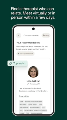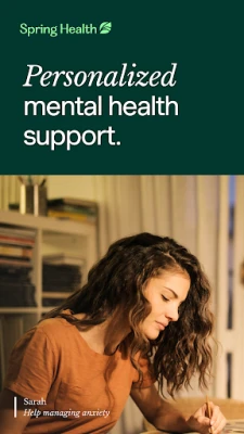 Spring Health provides personalized mental healthcare and wellness support designed to help you feel your best. Download the app to unlock your benefit (at no cost to you). Browse our diverse provider network and schedule therapy or other care appointments from anywhere. No matter what you’re going through you’ll find therapists who can relate. Explore our library of self-guided exercises, called Moments, and build skills to manage stress, anxiety, sadness, or whatever you’re experiencing in life right now.